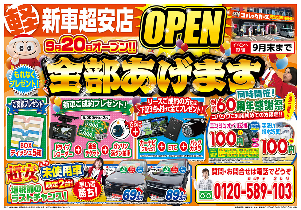 代車無料ですので、ご予約日当日に施工されるお車でご来店頂くだけです!