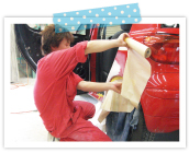 専用の乾燥機を使用して短時間で新車と同じ硬さまで乾燥させ、磨きます。